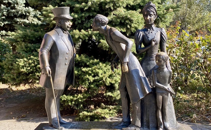 Скульптурная композиция «Толстый и тонкий» рядом с музеем «Лавка Чеховых» в Таганроге. Фото Елены Анисимовой