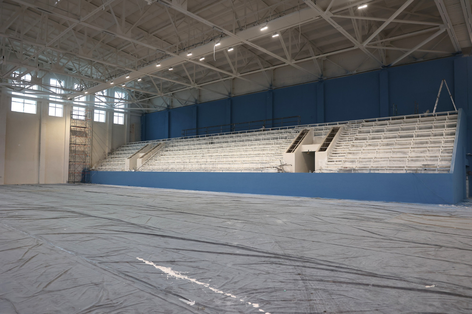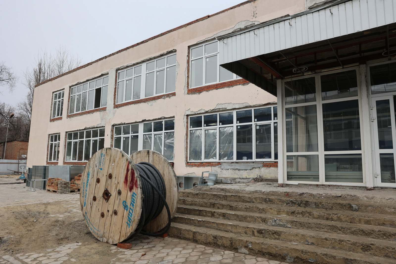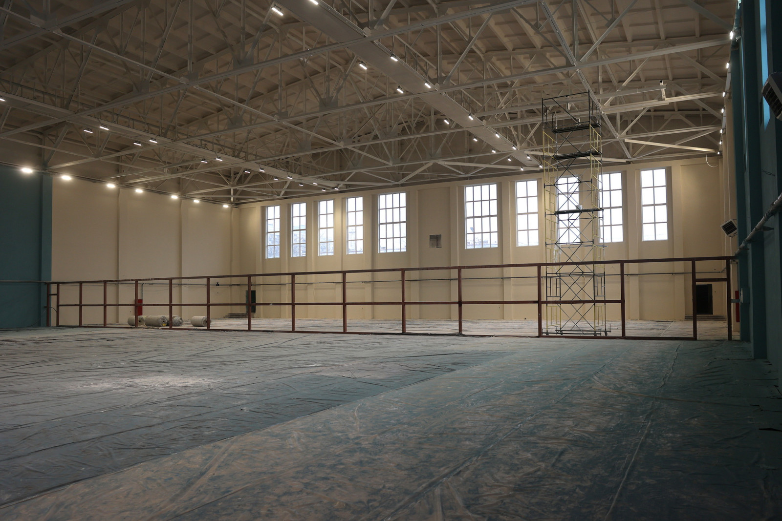 Подрядчик доложил Юрию Слюсарю, что строительная готовность объекта превышает 55%: рабочие заканчивают замену кровли, полов и инженерных сетей. В двухэтажном здании идут внутренние отделочные работы, в спортзале заканчивается монтаж трибун.