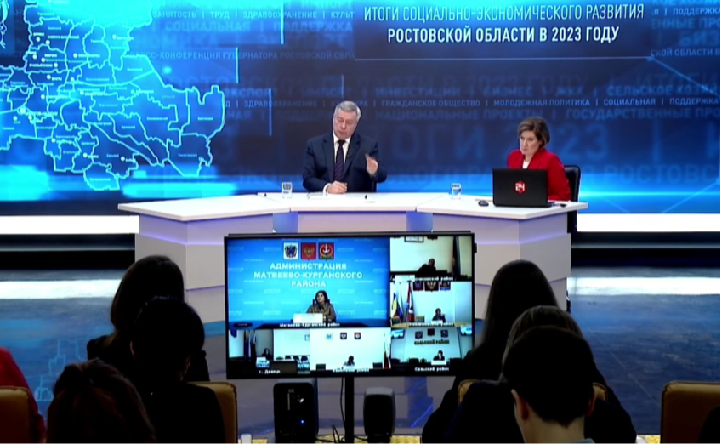 Губернатор РО Василий Голубев на пресс-конференции «Итоги социально-экономического развития Ростовской области в 2023 году». Скриншот трансляции donland.ru