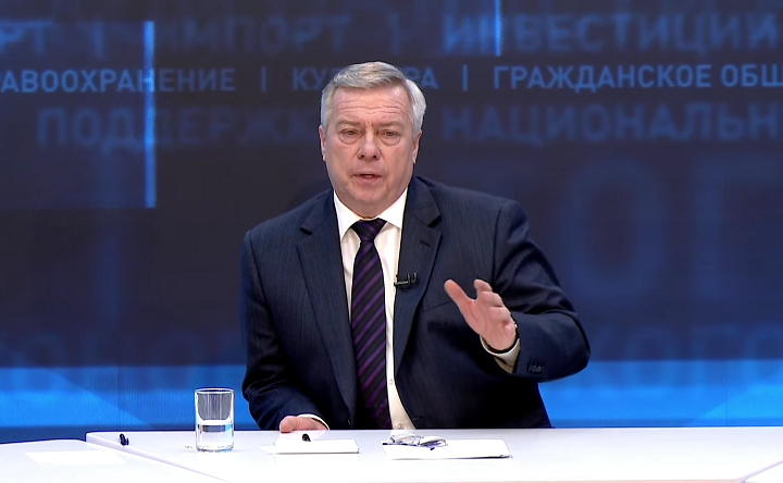 Губернатор РО Василий Голубев на пресс-конференции «Итоги социально-экономического развития Ростовской области в 2023 году». Скриншот трансляции donland.ru