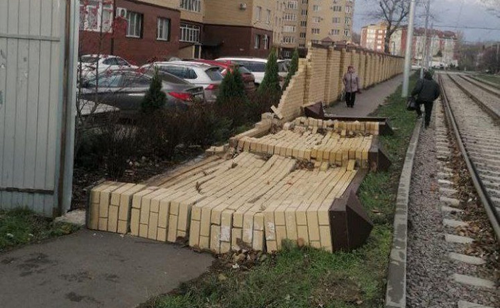 Упавший кирпичный забор, улица Инструментальная. Фото telegram-канала «Мой Таганрог»