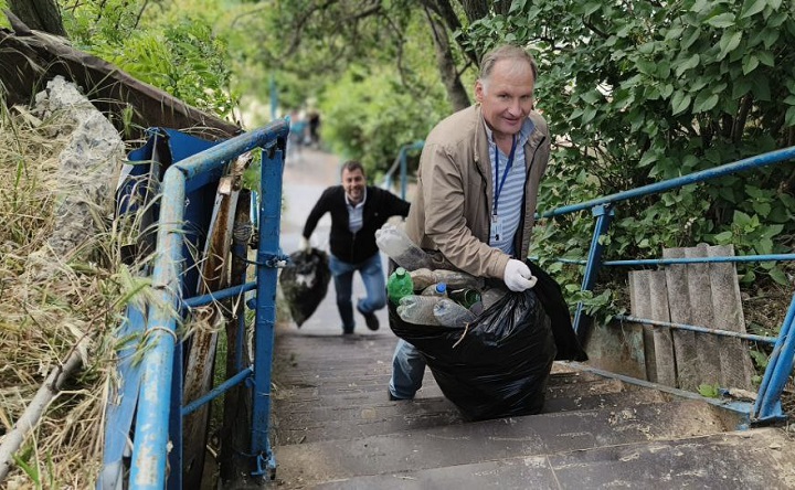 За несколько часов уборки с берега собрали и подняли наверх более 250 кг пластиковых бутылок, рыбацких сетей, которые иногда приходилось вырезать ножом, автомобильных покрышек и прочего мусора. Нашли даже старый чемодан, сообщили в профкоме предприятия.