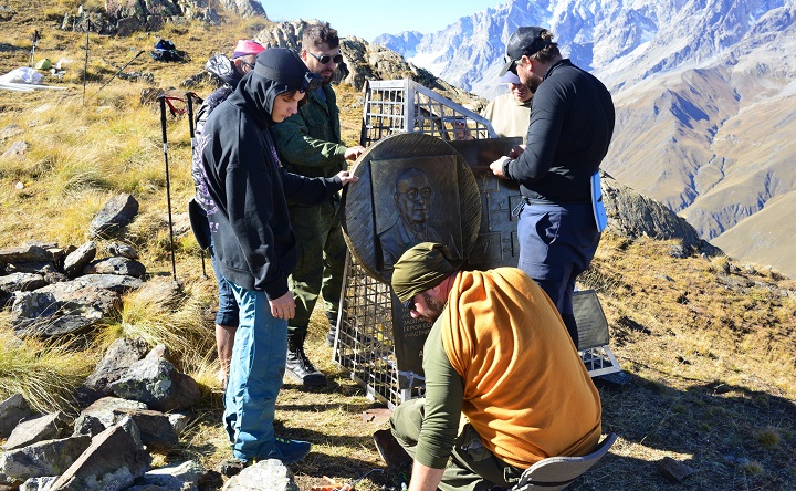 Установка мемориала у пика Академика Каляева. Фото пресс-службы ЮФУ