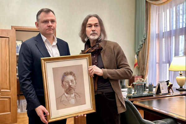 Никас Сафронов встретился с врио губернатора Слюсарем Юрием и передал в дар Таганрогскому художественному музею графический портрет А.П. Чехова, написанный им специально в год 165-летия писателя. Об этом сообщила пресс-служба художника. Встреча прошла в представительстве Ростовской области в Москве.