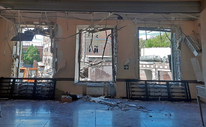 При взрыве ракеты у здания Художественного музея на Банковской площади кроме самого особняка частично пострадала и музейная экспозиция.