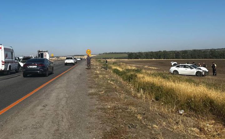 По данным отдела пропаганды УГИБДД по Ростовской области, ДТП произошло около 8 утра 3 августа на 44-м км автодороги «Новороссия», недалеко от поворота на Мержаново. 68-летний водитель кроссовера Renault Duster выезжал с второстепенной дороги и при повороте налево не уступил дорогу седану Kia K5, который двигался по главной. Произошло столкновение, Kia вылетела с дороги.