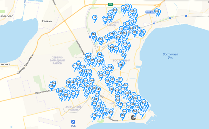 На карте видно, что убежища в Таганроге расположены неравномерно, и в некоторых районах, например вдоль берега по улицам Адмирала Крюйса, Бабушкина и в районе Михайловки людям некуда бежать.