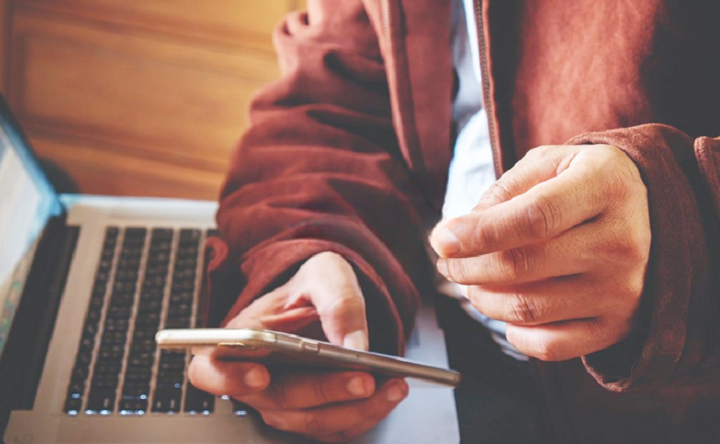 Мужчина с телефоном у компьютера. Фото ruffnews.ru