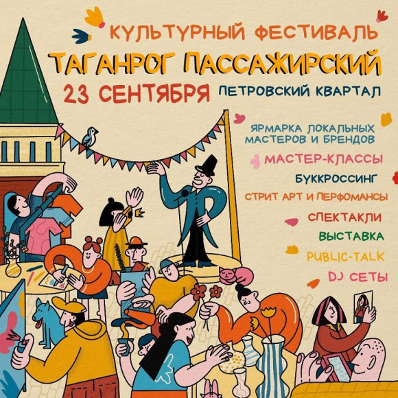 «Таганрог пассажирский» под таким названием пройдёт фестиваль 23 сентября в Петровском квартале. Гостей ждут ярмарки, мастер-классы, стрит и арт-перфомансы, спектакли и DJ–сеты. Все мероприятия будут идти с 12:00 до 20:00.