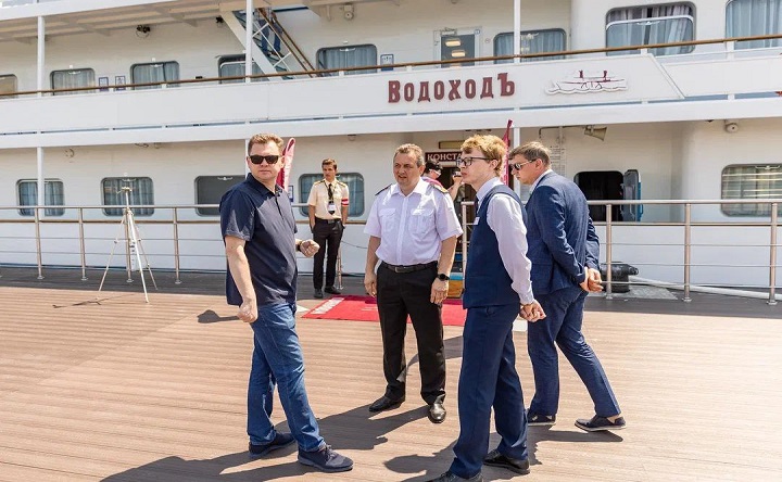 110 человек — пассажиров теплохода прибыли в Таганрог на весь день. Две экскурсии ожидают гостей в приморском городе. На теплоход поднялся глава администрации Андрей Фатеев, он поприветствовал экипаж и пассажиров.
