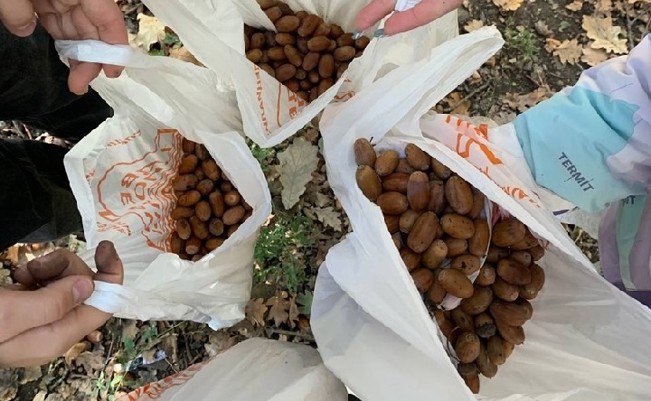 Жёлуди, собранные волонтёрами в Таганроге. Фото Дмитрия Беспалова