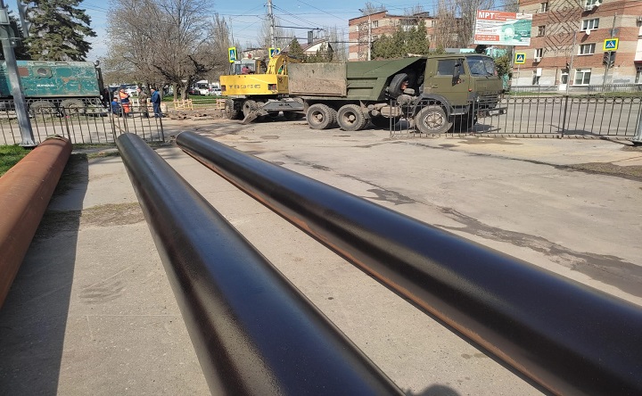 Работники таганрогского водоканала 4 апреля начали работы по замене участка трубы диаметром 500 мм, длиной 36 метров, проходящей под дорогой улицы Тольятти.