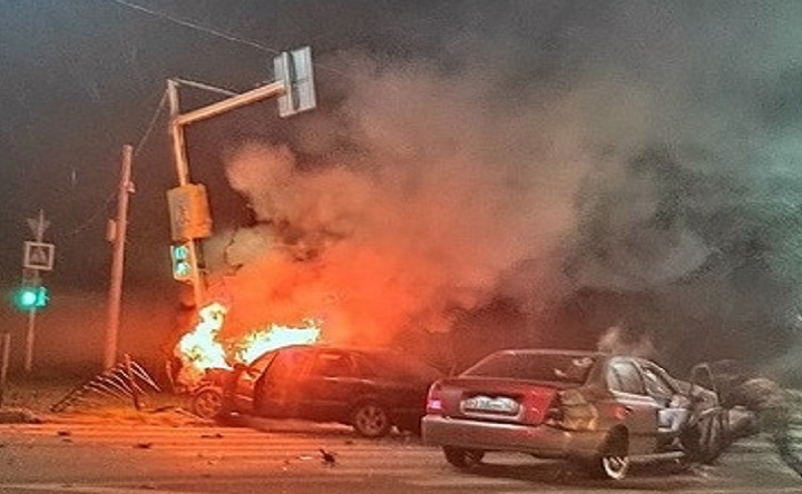 В Таганроге на пересечении улицы Морозова и Тольятти ночью 14 июля произошло серьёзное ДТП. На скорости столкнулись две машины, одна из них загорелась, есть пострадавшие.