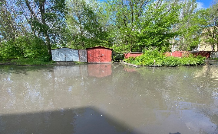— То ли стоки забиты, то ли их вообще нет, вода никуда не уходит, машину в гараж через такое водное препятствие не загнать, — пожаловался местный житель.