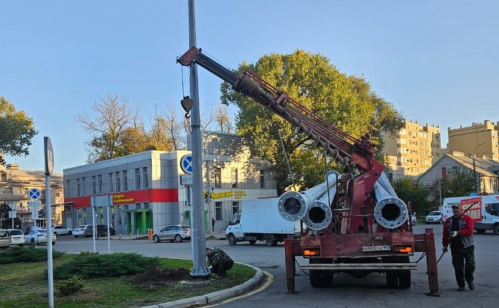 Установка уличного освещения в Таганроге. Фото telegram-канала Светланы Камбуловой