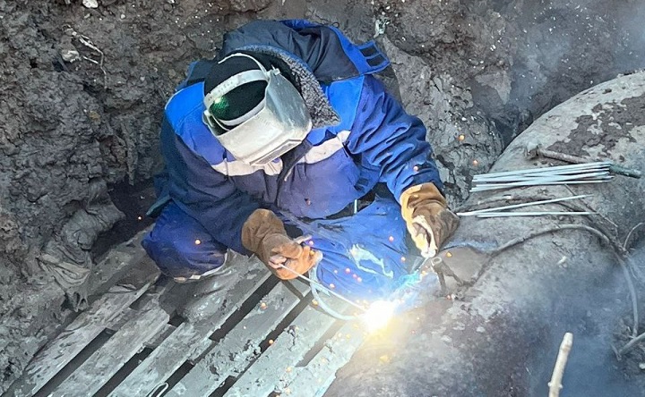 Сварочные работы на месте прорыва велись почти до полуночи. С начала суток 8 января начали заполнять систему теплоснабжения.