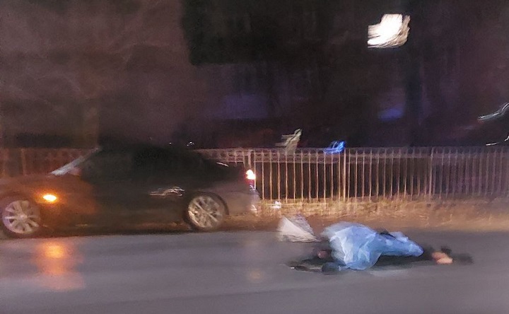 По свидетельствам очевидцев, мужчина переходил улицу на зелёный свет, когда водитель чёрной BMW решил проскочить на красный. Пешеход скончался до приезда скорой помощи. У машины разбито лобовое стекло, оторван бампер. На месте работают следователи.