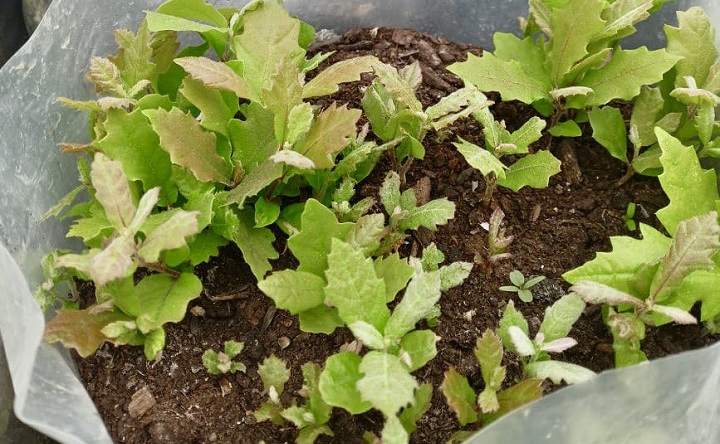 С начала октября волонтёрам удалось собрать около 350 кг желудей — из них для проращивания отобрали 50 кг самых лучших. Это были семена екатерининского и петровского дубов из Таганрога, дуба «Пушистого» из Абрау-Дюрсо, геленджикского — с золотой цепью, и даже жёлуди натухаевского дуба, которому, по оценкам специалистов, около 600 лет. На проращивание заложили 30 тысяч желудей, за зиму из них удалось поднять почти 10 тысяч ростков, рассказал «Ершу» председатель региональной молодёжной общественной организации «Молодёжный клуб», руководитель экологического проекта Дмитрий Беспалов.