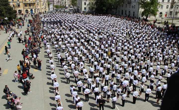 5 мая на Октябрьской площади Таганрога в преддверии 78-й годовщины Великой Победы состоится патриотическая молодёжная акция «Вальс Победы». Участие в ней примут более 2 тысяч человек, это студенты и школьники города, которые репетировали танец под песню «Синий платочек».