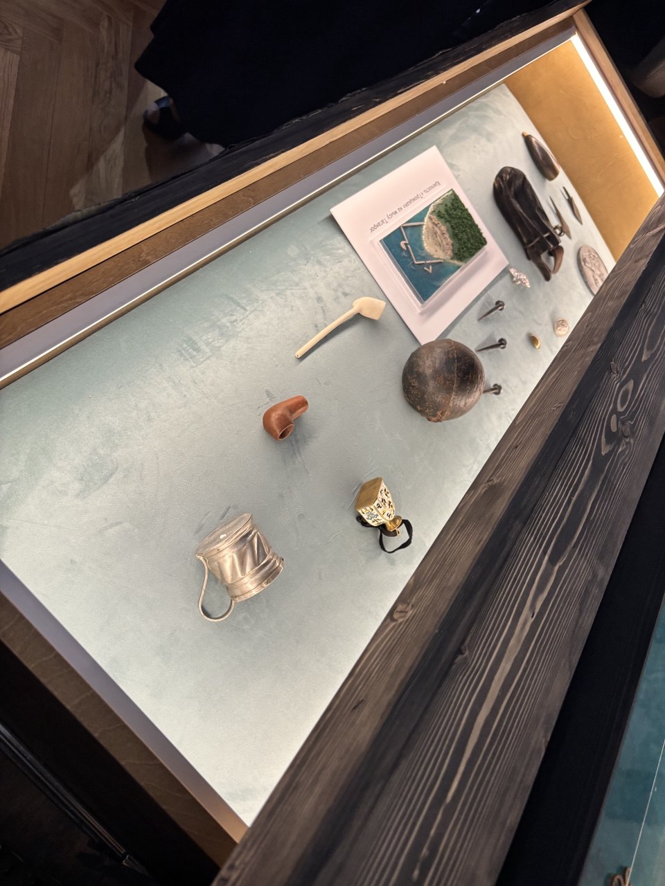 Под стеклом установлены макеты кораблей, в выдвижных ящиках лежат муляжи музейных экспонатов, которые можно брать и рассматривать. Общая площадь выставки — 1700 квадратных метров.