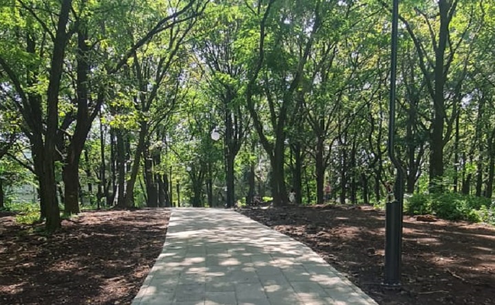 Аллея с освещением в роще. Фото ООО «РЭП «Профессионал»
