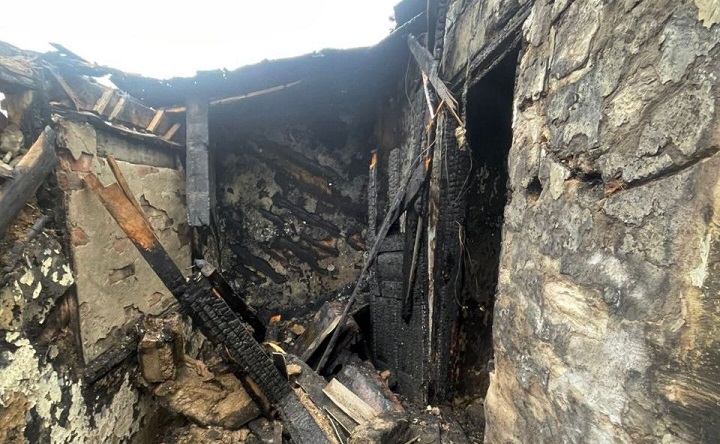 Сгоревший дом в селе Латоново. Фото пресс-службы МЧС Ростовской области