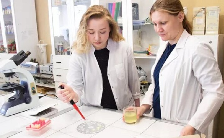 Разработчики бионапитка в лаборатории кафедры «Пищевые и биотехнологии» ЮУрГУ. Фото пресс-службы ЮУрГУ