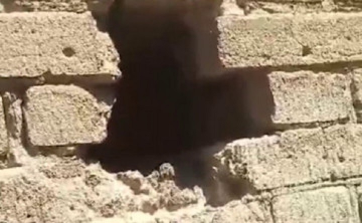 Стена дома, где нашли снаряд. Скрин с видео из соцсетей